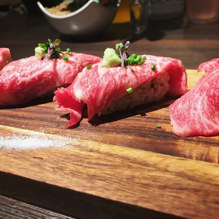 本日の賄い。飛騨牛リブロースの肉寿司!